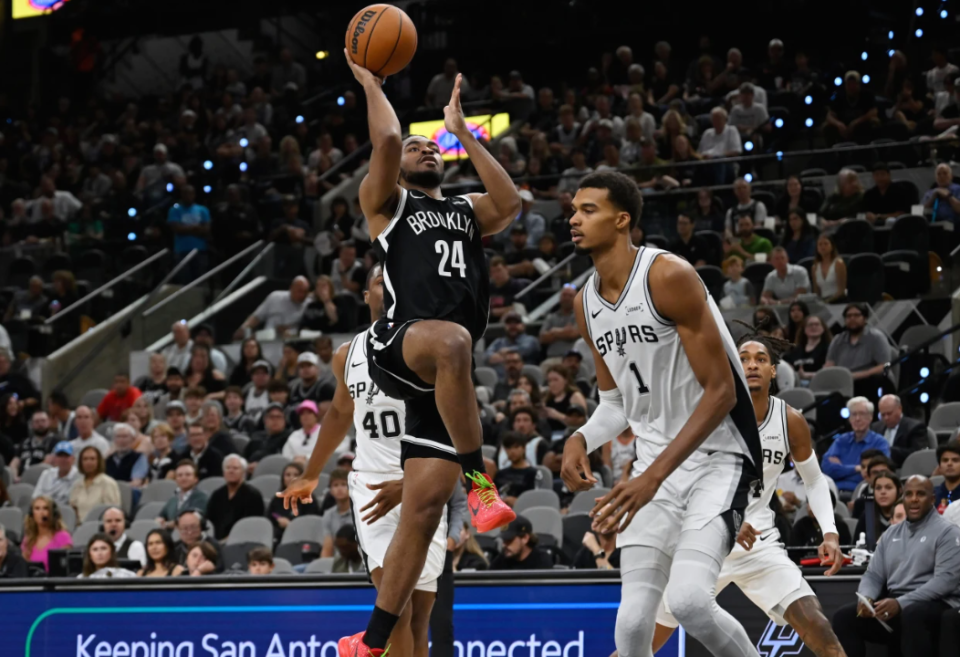 篮网107-118不敌马刺,卡姆-托马斯25投11中,其中三分球12投5中,13罚13中,拿到40分,没有助攻。他成为队史首位拿到至少40分5三分,但助攻为0的球员。