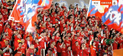 第15分钟,场面平淡但球迷热情,镜头给到摇旗呐喊的主场球迷
